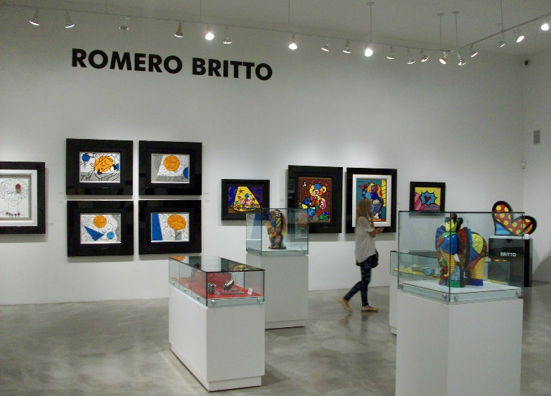 A galeria do internacionalmente conhecido artista brasileiro em Miami é um sucesso. Nela você encontra quadros, canecas, livros infantis, malas e outras lembrancinhas. Na Galeria do Romero Britto em Miami você pode comprar peças com uma das famosas estampas coloridas do artista por 5 dólares, ou olhar as grandes obras de Britto que chegam a custar 50 mil dólares.