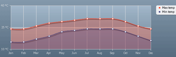No período do verão, especificamente, as temperaturas ficam entre os 25ºC e 31ºC, e costuma chover bastante no fim da tarde, por conta das massas de ar quente que se acumulam. Mas a cidade é bem estruturada e preparada para o seu clima – você vai reparar que todas as lojas, shoppings, restaurantes, táxis e comércios possuem ar-condicionado forte, que amenizam o calor.