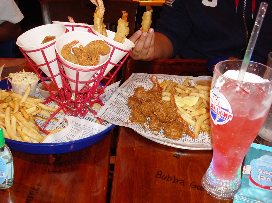 Para se ter uma ideia dos preços do Bubba Gump Shrimp em Orlando: uma porção de onion rings custa 9 dólares, o tradicional coquetel de camarões com molho sai por 14 dólares, e uma salada com camarões pode custar 6 ou 8 dólares, dependendo do tamanho que você pedir. Um sanduíche de frango com bacon, queijo especial e guacamole custa 13 dólares, e costelas com barbecue custam 22 dólares.