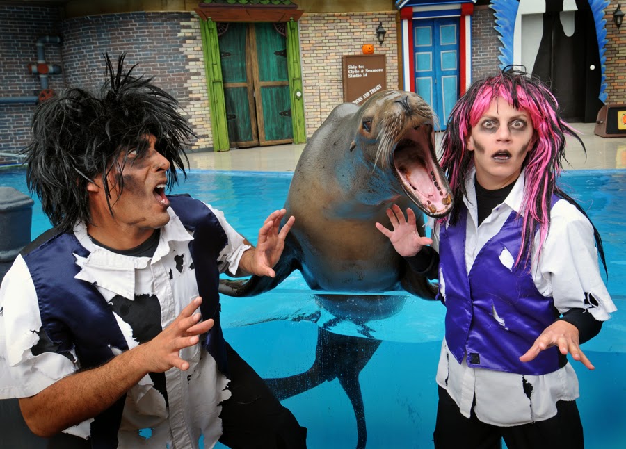O Spooktacular é a comemoração de Halloween do Parque Sea World em Orlando, cheia de atrações diferentes e para todas as idades se divertirem. Confira! São finais de semana do mês de outubro, quando o parque faz comemorações e eventos especiais de Halloween para os visitantes. O Halloween Spooktacular do Sea World é um pouco diferente dos outros parques, pois a ideia não é ser uma evento que cause medo nas pessoas, e sim que traga diversão até mesmo para as crianças (como o Halloween da Disney). Ao invés de monstros, você vai ver pelo parque peixes de abóbora e fadas do mar. Uma atração nova no evento é o Waves of Trick-or-Treat Fun, com mais de 2 milhões de doces distribuídos para as crianças brincarem de “gostosuras ou travessuras” pelo parque. A Penelope’s Party Zone também é uma atração legal da festa de halloween do Sea World, onde um DJ toca músicas com muita luz, abóboras iluminadas e diversão embaixo d’água.