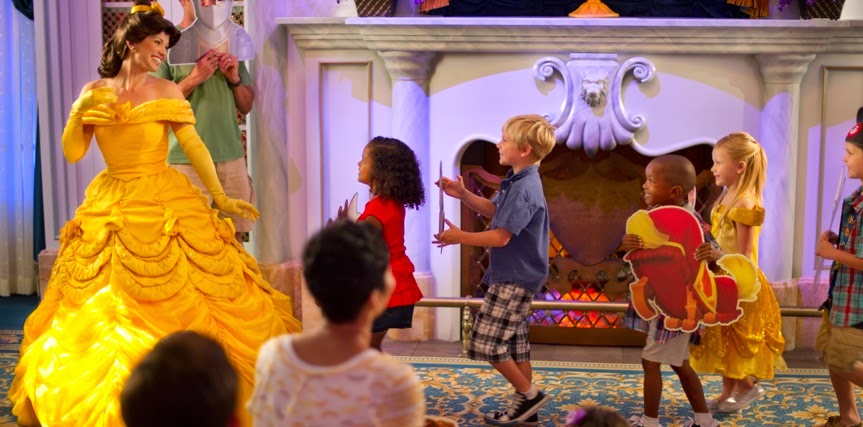 Local: Enchanted Tales with Belle (Fantasyland), Restaurante Cinderella´s Royal Table (as princesas podem alternar as visitas aos restaurantes).