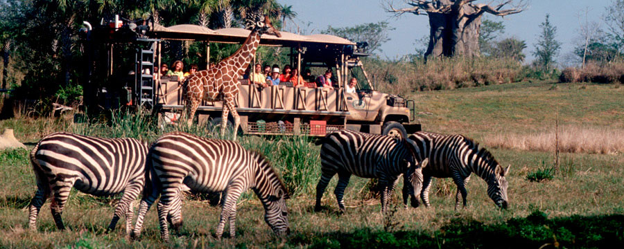 Uma atração tranquila e super famosa na Disney e no Animal Kingdom é a Kilimanjaro Safaris Expedition, que é um safári no meio dos animais exóticos da África. É um safári real, onde você entra em um caminhão especial para esse passeio e entra em um espaço que simula o habitat do continente africano, cheio de animais. O veículo tem suas laterais abertas, então dá para ver bem os animais e tirar várias fotos. Vale muito a pena e você vai ver de perto animais como girafas, leões, antílopes, rinocerontes, zebras, javalis e outras espécies impressionantes. Uma boa dica é fazer dele um de seus primeiros passeio no dia, porque conforme o parque vai enchendo, a fila aumenta bastante e você acaba perdendo tempo.