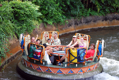 O Kali River Rapids é um ótima opção para se refrescar do calor e do sol de Orlando, e é a atração que mais molha na Disney. Você irá percorrer o agitado Rio Chakranadi dentro de uma floresta tropical asiática, em um barco redondo que fica girando e se movimentando de acordo com a correnteza do rio. Proteja bem as máquinas, eletrônicos e outros itens sensíveis pois muito provavelmente você irá sair molhado de lá. Dá para levar ou comprar na hora uma capa de chuva, que ameniza um pouco, mas vale a pena ir de qualquer forma porque é bem divertido. O brinquedo só não é recomendado para pessoas idosas ou mais sensíveis, uma vez que pode balançar bastante e bater nos cantos do percurso, provocando abalos no corpo.