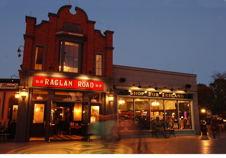 O Raglan Road é um local bem grande e arejado. Ele possui um salão principal com um palco onde rolam diversos shows especiais e típicos da Irlanda, principalmente no feriado de St Patrick’s Day, que acontece sempre no dia 17 de março. Há sempre grupos se apresentando, e tem um show de sapateado irlandês a cada meia hora. Todos os ambientes foram pensados e decorados para fazer com que os visitantes se sintam na Irlanda. O Pub também tem uma área externa, descoberta, que faz bastante sucesso no verão e nos dias quentes. Localizado em Disney Springs, dentro do complexo, o local é bem seguro e agradável de se ir em casal, amigos ou até em família, para jantar. A reserva é fortemente recomendada, se você não quiser esperar. Se esquecer ou quiser arriscar, pode levar seu pager de espera e passear por Disney Springs enquanto aguarda.